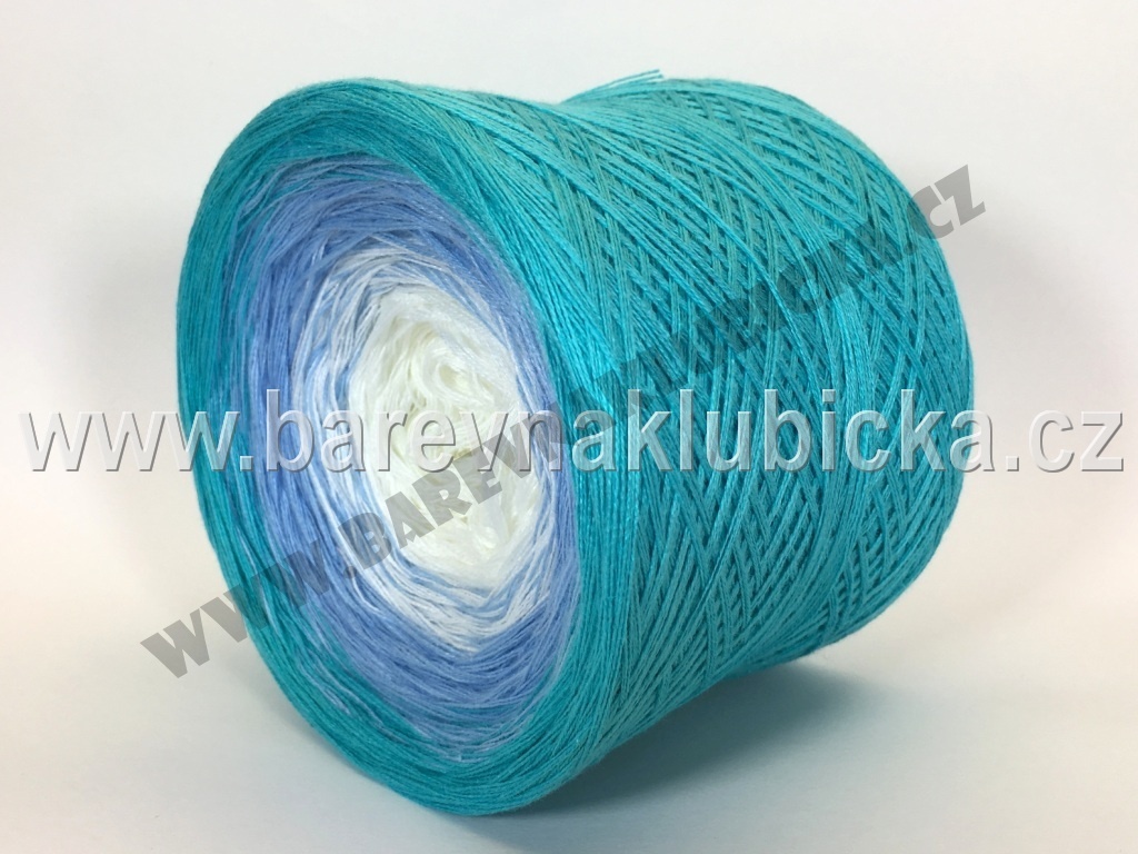 3-nitka barevné klubíčko s dlouhými barevnými přechody složené ze 3 přízí, které nejsou vzájemně spojené zákrutem. Jedná se o Barevné klubíčko vyrobené speciálně na šátek.