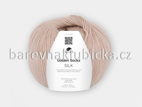 Pro Lana Golden socks silk je luxsusní jednobarevná ponožková příze. Jedná se o směs prvotřídních materiálů 55% vlny a 20% hedvábí dodává přízi měkost a hladkost, 25% polyamidu větší ododlnost.