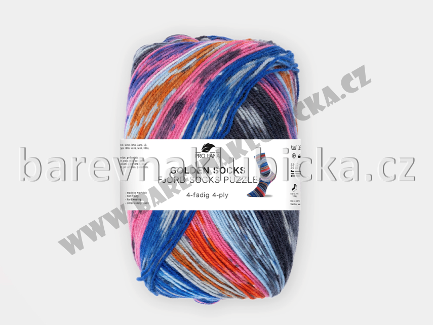 Pro Lana Fjord Socks Puzzle ponožková příze vyznačující se specifickou barevností, která vytváří na ponožkách pruhy, melír i tečky. Perfektní volba i pro začátečníky. Ponožková příze z kvalitní vlny s vysokou pevností a odolností. Příze se speciální úpravou, která umožňuje upletené ponožky prát v automatické pračce (doporučujeme program na vlnu bez aviváže, sušit vodorovně).