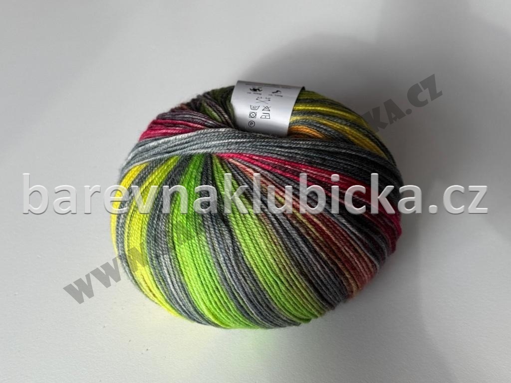 Woolly Hugs Pain Socks ponožková příze vyznačující se specifickou barevností, která vytváří na ponožkách pruhyaniž by jste museli měnit klubíčka. Pro snadné upletení dvou stejných ponožek, najdete v klubíčku žlutou startovací nit. Perfektní volba i pro začátečníky. Ponožková příze z kvalitní vlny s vysokou pevností a odolností. Příze se speciální úpravou, která umožňuje upletené ponožky prát v automatické pračce (doporučujeme program na vlnu bez aviváže, sušit vodorovně).